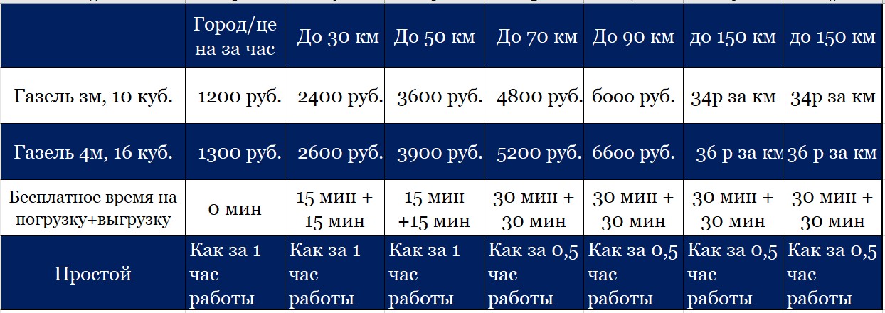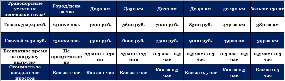 • Квартирные и офисные переезды «под ключ»: Упаковка, погрузка, транспортировка, разгрузка и расстановка – мы возьмем на себя все заботы. Бригада из двух грузчиков и ГАЗель 4 метра 2600 руб в час.